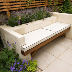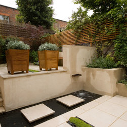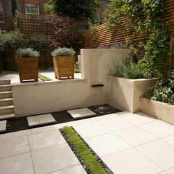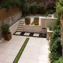 The existing garden had timber decking and was planted with mature, architectural plants, giving it an overgrown, claustrophobic feel. It was on two levels, with the upper level badly encroaching on the house. The owners wanted a new garden with a light, Mediterranean touch to reflect their Southern European origins.