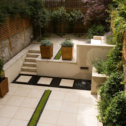 The clients, both busy professional people, were carrying out major works on their Grade II listed Regency house in Kensington, West London and wanted an elegant garden which reflected the decorative style of the architect-designed interior of their house. The interior design included limestone, simple white walls and hardwood finishes, setting off an eclectic collection of paintings, sculpture and furniture sourced from all over the world.