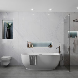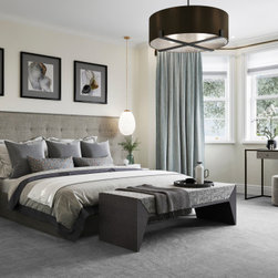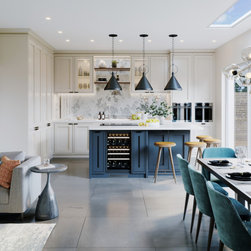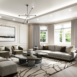 A contemporary new build development in Wimbledon showcasing neutral tones with bold accents to create a striking design focused on lighting and space.