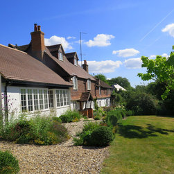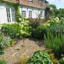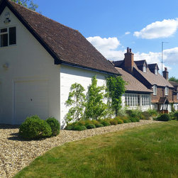 This pretty cottage in Hampshire has a large sloping garden wrapping around the front and side with woods and fields to the rear and a narrow lane at the bottom. We had previously designed a formal London garden for these clients; however, for their cottage, we were all in agreement that something gentle and bucolic that would sit harmoniously into the surroundings was needed.