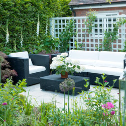 The owner of this charming cottage in the Chiltern hills in Buckinghamshire wanted to make major changes to her garden. Previously it was mainly laid to lawn with a shed and a greenhouse dominating the view down the garden. Instead, she asked Charlotte Rowe to design a garden which she could enjoy, use and nurture but without an inordinately high level of maintenance. She did not want a lawn to look after but as it is a country garden in a tiny village, equally, she did not want it to be too urban and out of keeping with the surrounding landscape. The design solution was to keep the main terrace area close to the house and create two other sitting areas linked by a path through large blocks of planting.