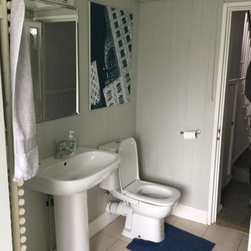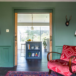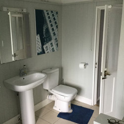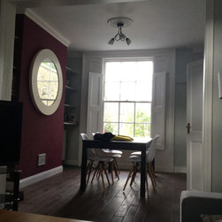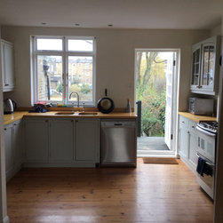 A full house renovation of a two bedroom / one bathroom house turned into a three bedroom / two 1/2 bathroom by converting the basement and linking it to the upstairs via a glass box kitchen extension.