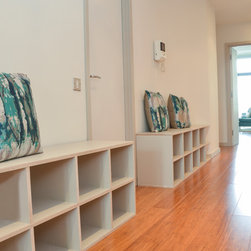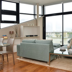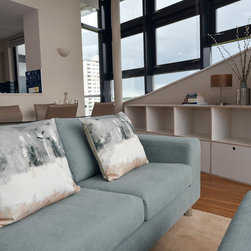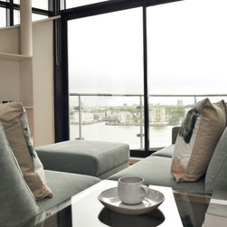 This riverside penthouse was looking bland and tired. The brief was to create a sleek, uncluttered living space for this busy client, with plenty of storage and easy-to-maintain lines.