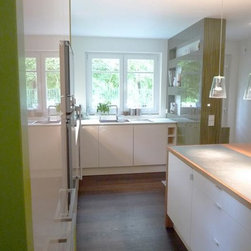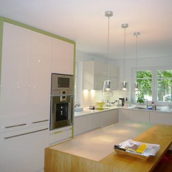 The interior design of various areas in a new built terraced house in Hamburg, Germany.