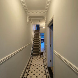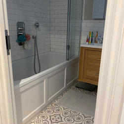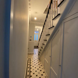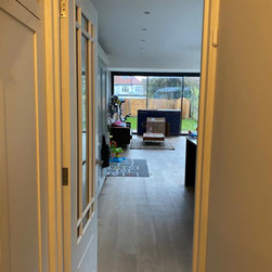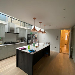 The clients made some great decisions such as retaining the traditional coving and original staircase, whilst adding a single storey rear extension with a full length right-angled glass roof to add light to the Kitchen area.