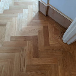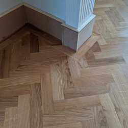 Our standard practice prior to laying parquet blocks involves building a strong subfloor that is sound, level and free of moisture. This allows us to create a parquet pattern with precise alignment, symmetry throughout the ground floor.