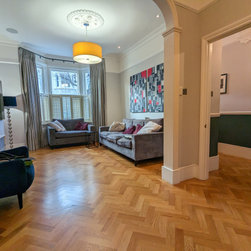 Our latest project showcases an elegant herringbone parquet with a classic single row border in a large Victorian terrace house nestled within the heart of Clapham. Our work focused on perfecting the elegant herringbone parquet floor with an uninterrupted single row border throughout the ground floor of the home. The project was later extended to include revitalising and repairing damage to the floors following subsequent renovations.
