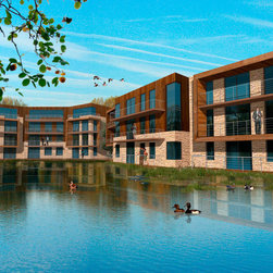Designed to incorporate a suite of housing styles and property types, the apartments around Milestone Lake respond to the changing lake conditions and the leisure centre marks the entrance to the development. Here we have proposed that a renewable energy hub be built to sustainably support the whole sites energy need.