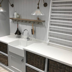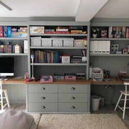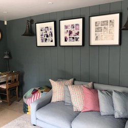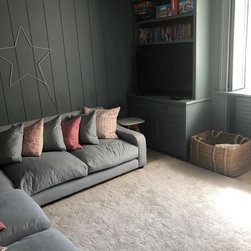 Our clients were keen to make better use of the large basement in their family home and create a series of more useful spaces. Therefore we created a family snug / TV room, a study space for the children, a utility room and a boot room.