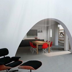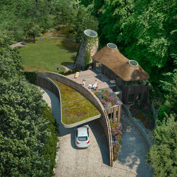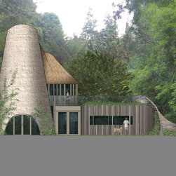 The conceptual design is derived from a combination of the site’s historic past, connection to quarrying and baking lime for mortar. Flight Farm’s main characteristic is the 11.7m chimney with a circular skylight which sits beside the main body of the house. This striking feature is reminiscent of the traditional lime kilns that can be found in this part of the Cotswolds AONB.