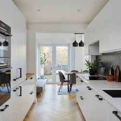 This redesigned ground floor started off as 2 rooms - a little used dining room and a separate kitchen. The client wanted to make the new space more open plan but also add a small utility room. We designed the space, recommended builders to do the work and project managed the job from start to finish. The end result as you can see is fantastic.