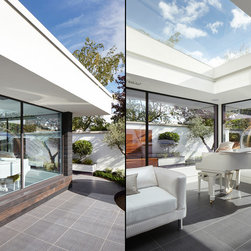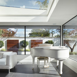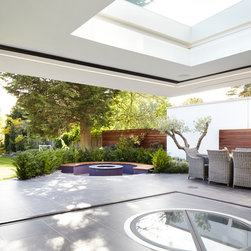 This complex rear extension, with a ground-floor ‘garden room’ and 2 new bedroom suites; inclusive of the enlarged master bedroom, is highly innovative while appearing simple and chic.