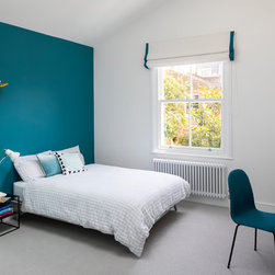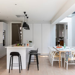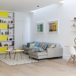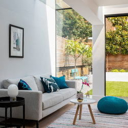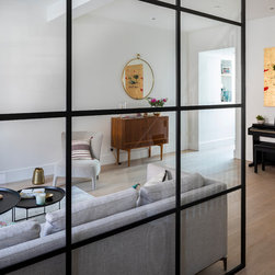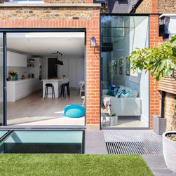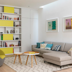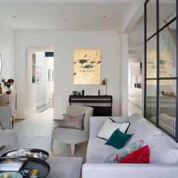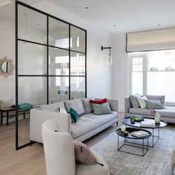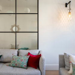 My clients wanted a “happy home; warm, bright, and cosy.” This Lion House in the Peterborough Estate, Fulham, needed to be easy to live in with young children — all while offering plenty of storage. We extended the kitchen at the back and added a Crittall-style fixed panel to separate the entrance from the living room, allowing light to flow freely throughout the space. Downstairs, the basement was redesigned to include a spacious family and media room — a bright, comfortable area for everyone to enjoy — along with a separate guest room, bathroom, and utility room. I reworked the internal layout, advised on materials, colours, and lighting, and designed the bespoke joinery throughout. The furniture was carefully chosen together with my clients so that every detail felt personal and true to the warm, cheerful atmosphere they wanted to create.