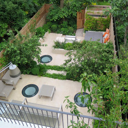 Four Springer Spaniels and some very large surrounding Lime trees had ravaged the existing lawn of this small shady South West-facing garden in Holland Park. In addition, a large sub basement was being built below so effectively most of the garden was a roof terrace with large unattractive light wells set within the garden to allow light down below.