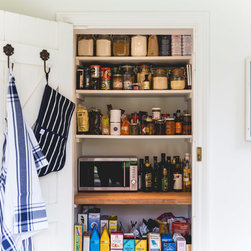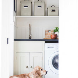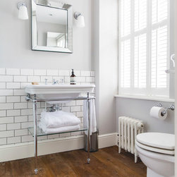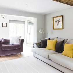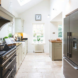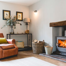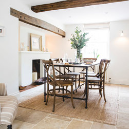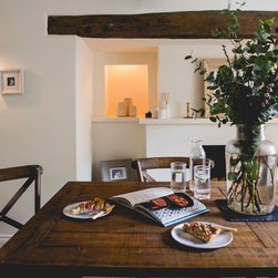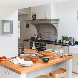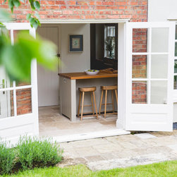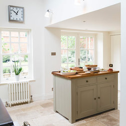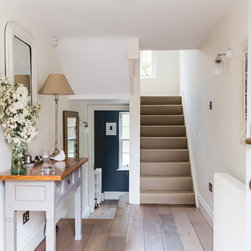 We have incorporated high end simplicity throughout the home by using authentic materials in a streamlined and classic way . Bespoke sash windows and french doors were made locally and high quality oak boards and limestone flags lend warmth and texture to the ground floor.
