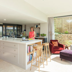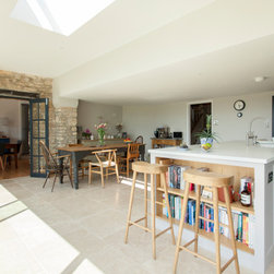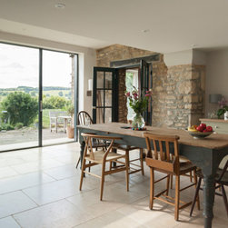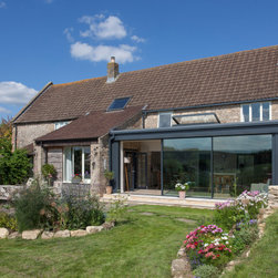 A traditional Cotswolds Barn has been extended by DHV Architects in Bristol to make the most of the fantastic view into the rolling Somerset countryside. A glass extension with large triple sliding doors has opened up a dark kitchen and dining room. A bespoke handmade kitchen complements high quality materials used for the conversion. The project has been featured in Ideal Homes and Somerset Life.