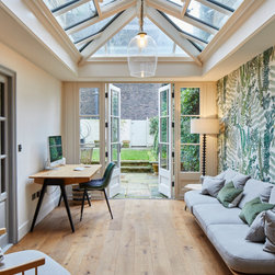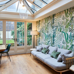 The new garden room, built by Vale Garden Houses, is an impressive new addition to the property. Light now flows through the space, where the theme is continued with 'Mind the Gap - Green Sanctuary' wallpaper. Hardwood Oak floors were fitted throughout.