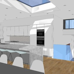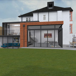 The proposal involves internal remodelling, a loft conversion with dormers and a substantial contemporary two-storey side/ rear extension. Our client was looking to transform and enlarge their home to better suit the needs of their large family while enhancing the enjoyment of their daily life. A key issue with the original house design was its lack of connection to the rear garden as well as its cellular layout. NVDC proposed to reimagine the house by opening up and reconfiguring the existing house layout on ground level and building a semi-open plan two-storey rear extension and creating a large master suite at attic level.