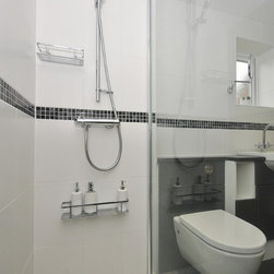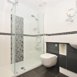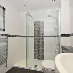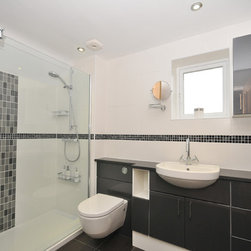 We used a large, frame less shower screen to create a spacious, contemporary shower. Utopia furniture carries the WC and washbasin and provides plenty of storage space.