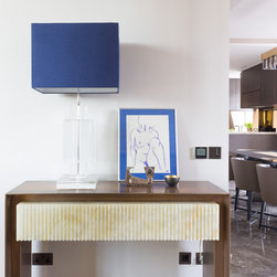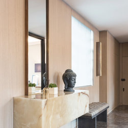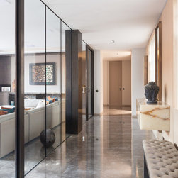 A linear apartment in a purpose-built 1920s mansion block was substantially refurbished and reorganized by Nick Leith Smith Architecture + Design. The project places a strong emphasis on quality of materials and maximizes the perceived living space within the apartment. The most substantial alteration was the restructuring of the hallway, returning it to its original proportions by removing the utility area added at a later date and creating a new frameless glass wall between hallway and reception area.