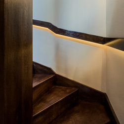 The staircase connecting 3 floors had a large void through the middle with a risky handrail that was set too low. When inspected further the 2nd floor of the property was uneven and had a difference of 16cm from one side to the other. This required structural modification and a new staircase. The new design allowed the void to be made smaller and the handrail to be replaced and raised. The result was stunning!