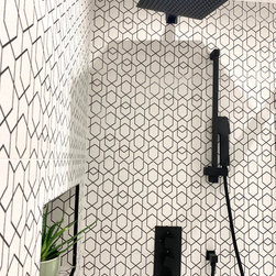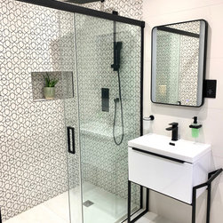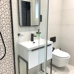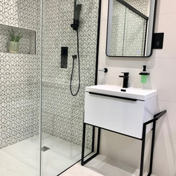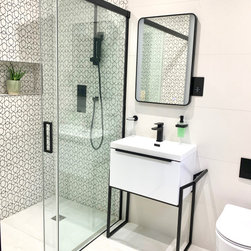 This bathroom was part of a refurbishment project of a large family home. We wanted to create a simple and stylish bathroom. We added a lovely feature tiles in the shower enclosure as the centrepiece.