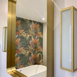 This bathroom was part of a huge family home refurbishment. The client wanted the main family bathroom to have a wow factor. We found these gorgeous feature wall tiles to create a backdrop for the free standing bath. We went for brass accessories and shower enclosure to compliment the added these...