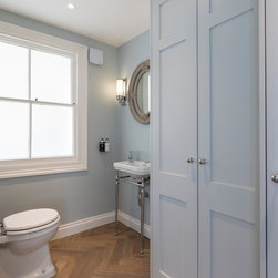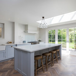 Structural works were undertaken – altering a doorway on a load bearing wall to lead into the large ensuite bathroom and removing the existing kitchen floor to create more ceiling height whilst installing new underfloor central heating. Huntsmore ran the building control process and any conversations with structural engineers to ensure that the project complied with building regulations.