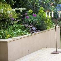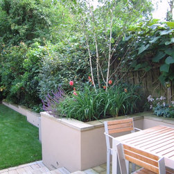 Contemporary and minimal design with traditional planting scheme created in three levels