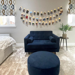 The client engaged our services to carry out a makeover of their teenage girls bedroom. We had to work with the existing main pieces of furniture. We created a beautiful colour scheme with pops of deep navy and a beautiful fabric for the roman blinds. We added a lush occasional chair and to give it...