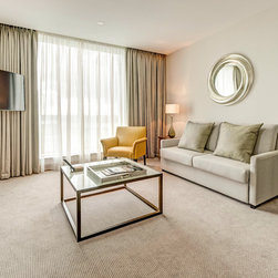 Inspired furniture from famous iconic designs, Distinction manufactured the desk chairs, sofa beds suited to fit in with this luxury interior design.