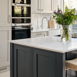 Painted Shaker kitchen with Oak island. Woodford Green.