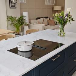 The vented induction hob is a delight. The vent pulls the fumes straight down before they have time to rise. A brilliant piece of engineering. Looks fantastic too set into the Carrera style quartz on the dark blue units.