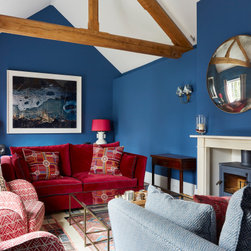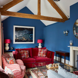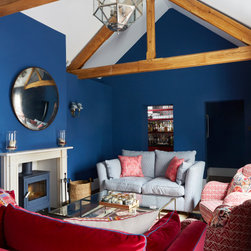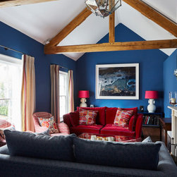 We sourced the kitchen from deVOL London and when moving the living room to the position of the old kitchen, we opened up the space and added oak trusses into the ceiling void.