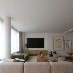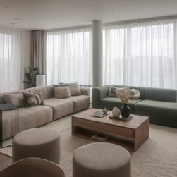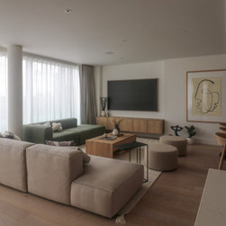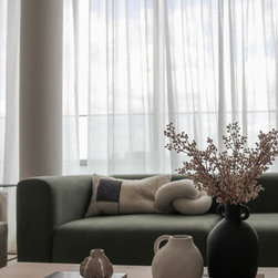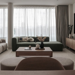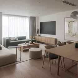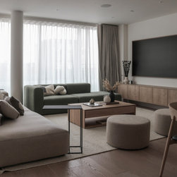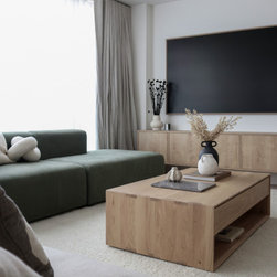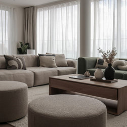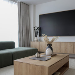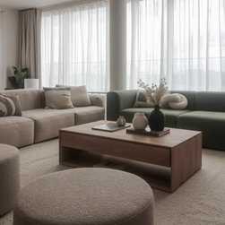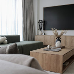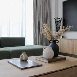 In this Japandi-inspired open-plan space, earthy tones and rich textures blend seamlessly to create a warm and cosy ambiance. Natural materials such as wood, stone, and linen dominate the palette, providing a harmonious backdrop that is both inviting and tranquil. Minimalist furniture with clean lines pairs with artfully positioned décor pieces, fostering an atmosphere of simplicity and serenity. The overall effect is a balanced, serene environment that feels both intimate and expansive, perfect for relaxation and contemplation.