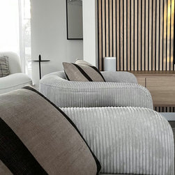 A brief of one word: Japandi. Using neutral colours throughout with contrasts of black, we added warmth with wood tones with panelling and bespoke cabinetry. A myriad of textures were used to bring interest and cosiness to the space.
