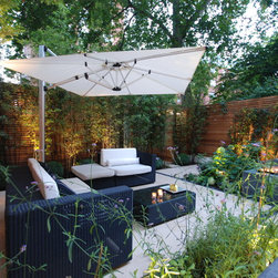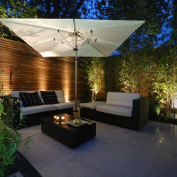 This 6 x 10 metre south-facing garden is located behind a large house in South Kensington but unusually opens up onto a major London street. For this reason it has particular issues – the shade of the enormous London Plane trees on the main road beyond, the sight and sound of London traffic including double decker buses and privacy issues on either side.