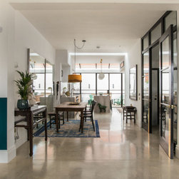 The polished concrete on ground floor allows for a continuous and homogeneous space. Light bounces off its surface through out the whole space.