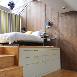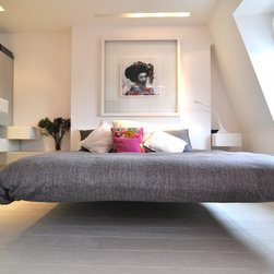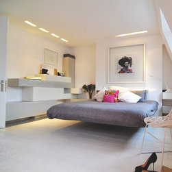 A mezzanine bedroom in a stunning converted ballroom in Earl's Court