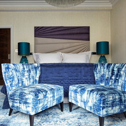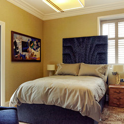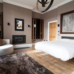 Bespoke artwork was created to blend seamlessly with the scheme in this stunning Baker Street bedroom