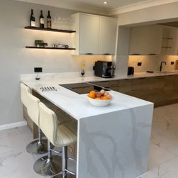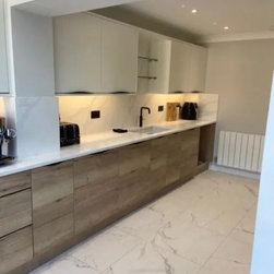 This sophisticated kitchen renovation boasts a unique design that exudes a hotel-like vibe, creating a space with a captivating ambiance. The distinctive elements come together to form a setting that is not only sophisticated but also reminiscent of a high-end hotel. The overall atmosphere is incredibly refreshing, making it a delightful and inviting area within the home.