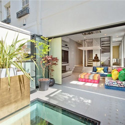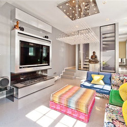 Extensive re-model, extension and refurbishment of this Knightsbridge home including new Lower Ground Floor flooded with light by walk on rooflight and lightwells. Gold and Silver Leaf kitchen within new Lower Ground Floor bounces diffuse and accented light throughout.