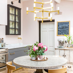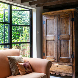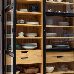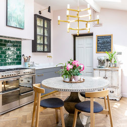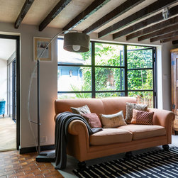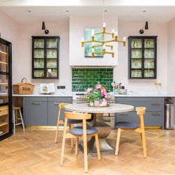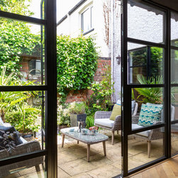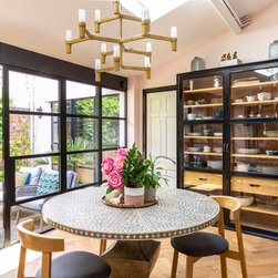 One of the most dramatic changes was the removal of a half-height brick wall which originally divided the kitchen into two spaces. New parquet flooring was installed in the kitchen and the old, heavy wooden windows were also removed and replaced by crittall style black framed windows.
