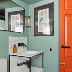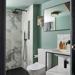 The property was then redecorated throughout using dramatic wallpapers and strong colours to compliment the client's eclectic style.