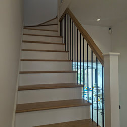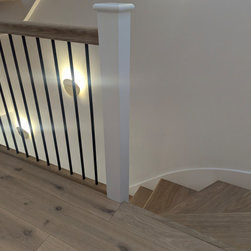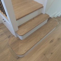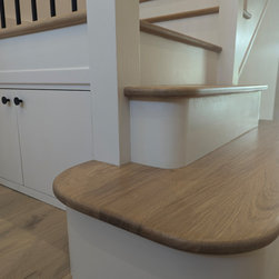 The two bottom steps are large and elegantly rounded, creating a striking design feature. While challenging to execute, our expertise and craftsmanship ensured a flawless and seamless result, enhancing the overall aesthetic of the staircase.
