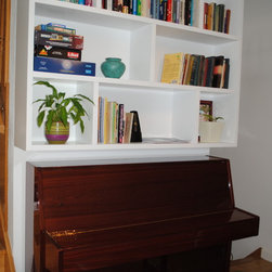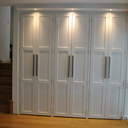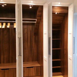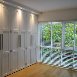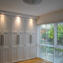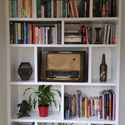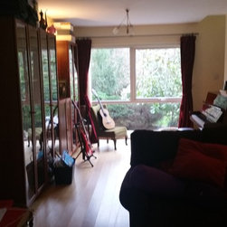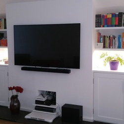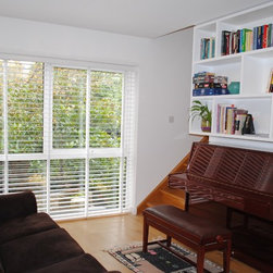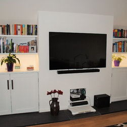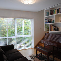 The clients of this property were struggling to make the entrance and living rooms work for them as a family. They were also struggling for storage in their home. They loved music, reading and relaxing but were finding it difficult to incorporate all these needs witihin the space. The entrance was a good size but had lost its function. The living room was also a good size but due to its shape it was hard to create a focal point. We were commissioned to help make both areas work for them. With the entrance we created a stud wall which allowed us to then create a beautiful storage cupboard. Within the cupboard we added LED lights which came on everytime the doors open and downlights inside and out. Not only did this unit provide function but it gave a beautiful aesthetic to the entrance. With the living room we created three zones. The living/tv zone, the snug/music zone and the reading zone. We created cabinetry to compliment these spaces. The clients wanted to keep their existing sofas . We added wide slat wooden venetian blinds to continue the contemporary look.