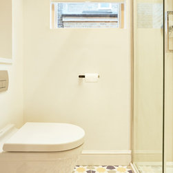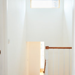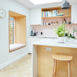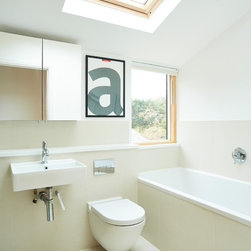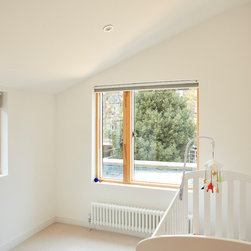 At first floor the bathroom was reconfigured and increased in size, and the ceilings to both the bathroom and bedroom within the rear projection were vaulted, creating a much greater sense of space, and also allowing rooflights to bring greater levels of daylight and ventilation into these rooms.
