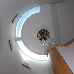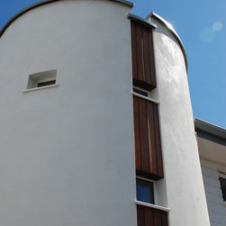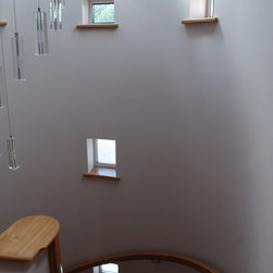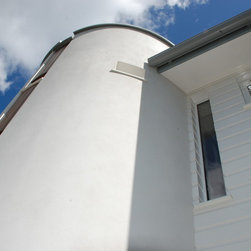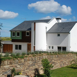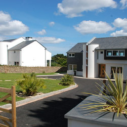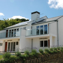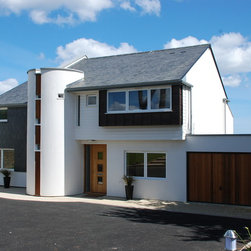 Both dwellings are modern in appearance; their most notable feature being the cylindrical stairwells and upper storey balconies which maximise the views across the Cornwall countryside.