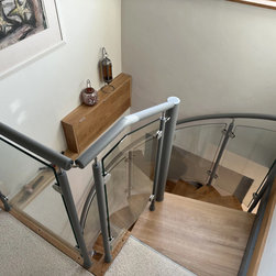 To enhance safety without compromising aesthetics, we incorporated beautifully curved glass panels and half-risers crafted from toughened glass, allowing ample natural light and visibility while providing secure footing. Every element was carefully considered, from the powder-coated railing posts topped by a matching curved handrail to the precision-cut 10mm toughened glass infill panels, delivering both structural integrity and striking visual appeal.