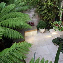 Final result: A small garden with a bold approach to plants, subtle lighting effect and materials.